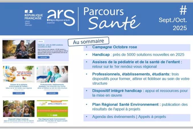 Parcours Santé est la lettre d’information électronique de l’ARS. Publiée tous les mois, elle vous propose une sélection d'informations sur l’actualit ...